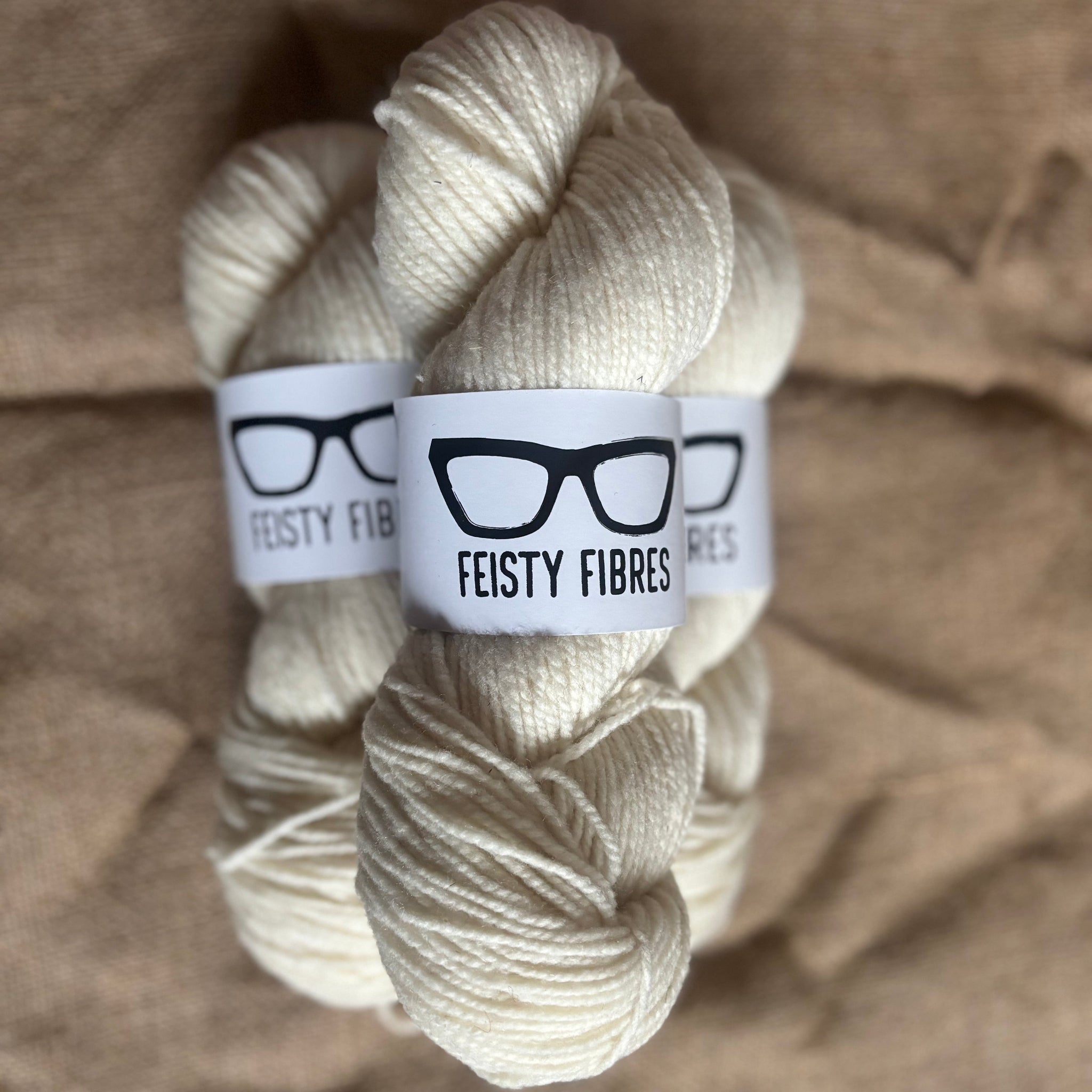 Surprisingly soft enough to wear against your skin. This yarn is plump and an excellent choice for colourwork and structured garments. You can get 12 to 18 sts with this base.